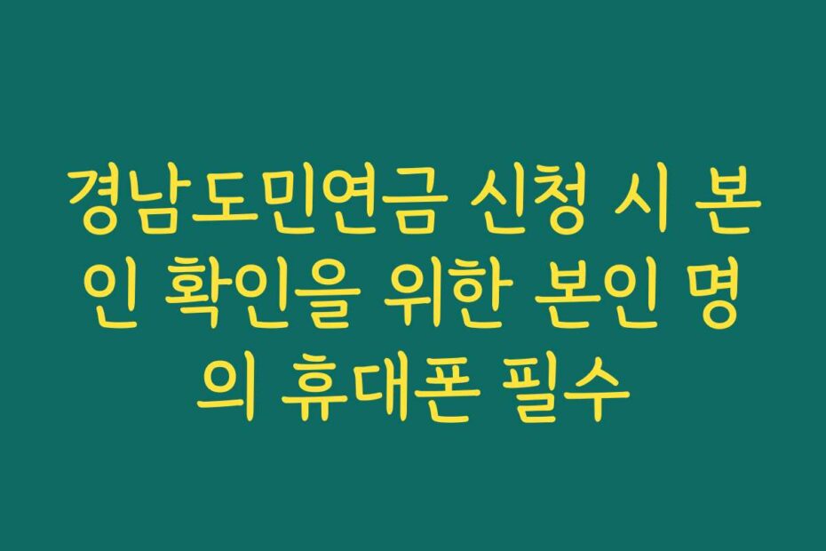 혹시 이런 고민 있으신가요. 경남도민연금 신청 시 본인 확인을 위한 본인 명의 휴대폰 필수로 인해 어려움을 겪고 계신 분들이 많습니다. 2026년 최신 정보로, 본인의 상황에 맞는 해결책을 찾을 수 있도록 안내해 드리겠습니다.