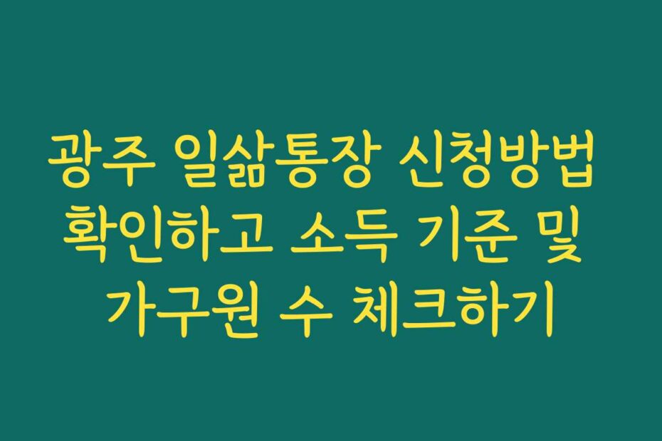 혹시 이런 고민 있으신가요. 2026년 최신 정보로 광주 일삶통장 신청방법 확인하고 소득 기준 및 가구원 수 체크하기에 대한 궁금증을 해결해 드리겠습니다. 이 글을 통해 필요한 정보를 한 번에 확인하세요.