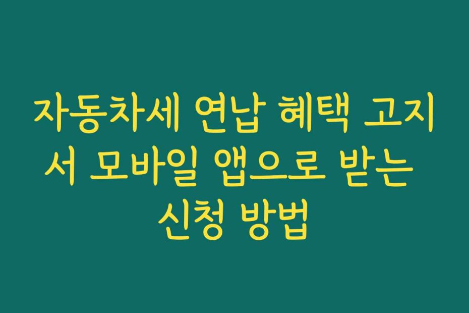 혹시 이런 고민 있으신가요. 자동차세 연납 혜택 고지서 모바일 앱으로 받는 신청 방법에 대해 알아보세요. 2026년 최신 정보로, 간단하게 신청할 수 있는 방법을 안내합니다.