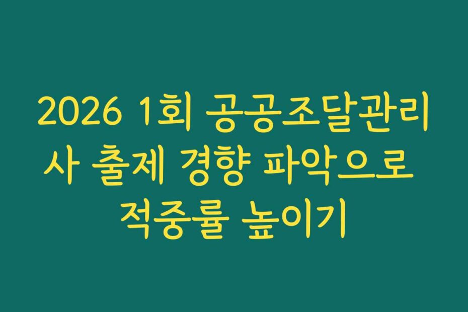 혹시 이런 고민 있으신가요. 2026년 1회 공공조달관리사 출제 경향 파악으로 적중률 높이기 위해 어떤 준비를 해야 할지 막막하신가요. 최신 정보와 전략을 통해 보다 효과적으로 준비할 수 있는 방법을 알려드리겠습니다.