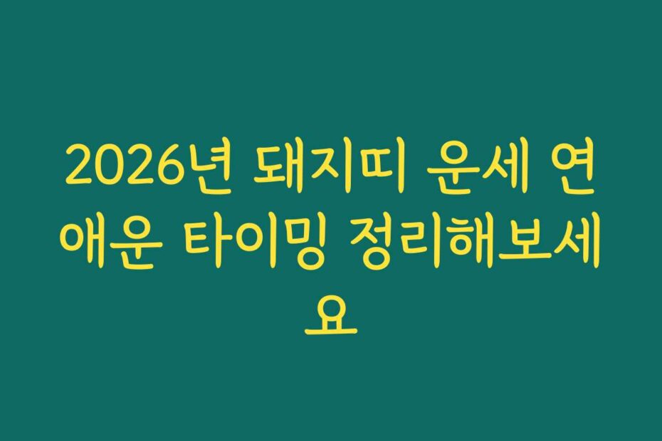혹시 이런 고민 있으신가요. 2026년 돼지띠 운세 연애운 타이밍 정리해보세요. 2026년 최신 정보로 여러분의 연애운을 보다 효과적으로 활용할 수 있는 방법을 알려드립니다.