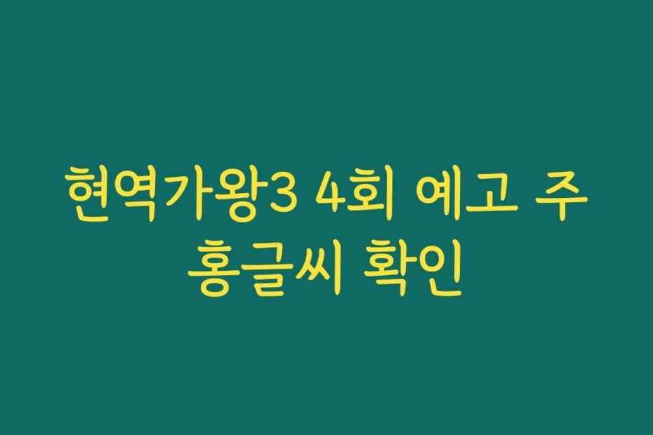 😰 현역가왕3 4회 예고 주홍글씨 확인 때문에 정말 힘드시죠. 혹시 이런 고민 있으신가요. ‘현역가왕3 4회 예고 주홍글씨 확인’에 대한 정보가 부족해서 어떻게 처리해야 할지 막막한 분들이 많습니다.