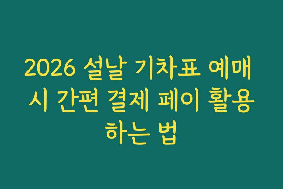 혹시 이런 고민 있으신가요. 2026년 설날 기차표 예매 시 간편 결제 페이 활용하는 법에 대해 알고 싶으신 분들을 위해 이 글을 준비했습니다. 2026년 최신 정보로, 여러분의 기차표 예매를 더욱 간편하게 만들어 드리겠습니다.