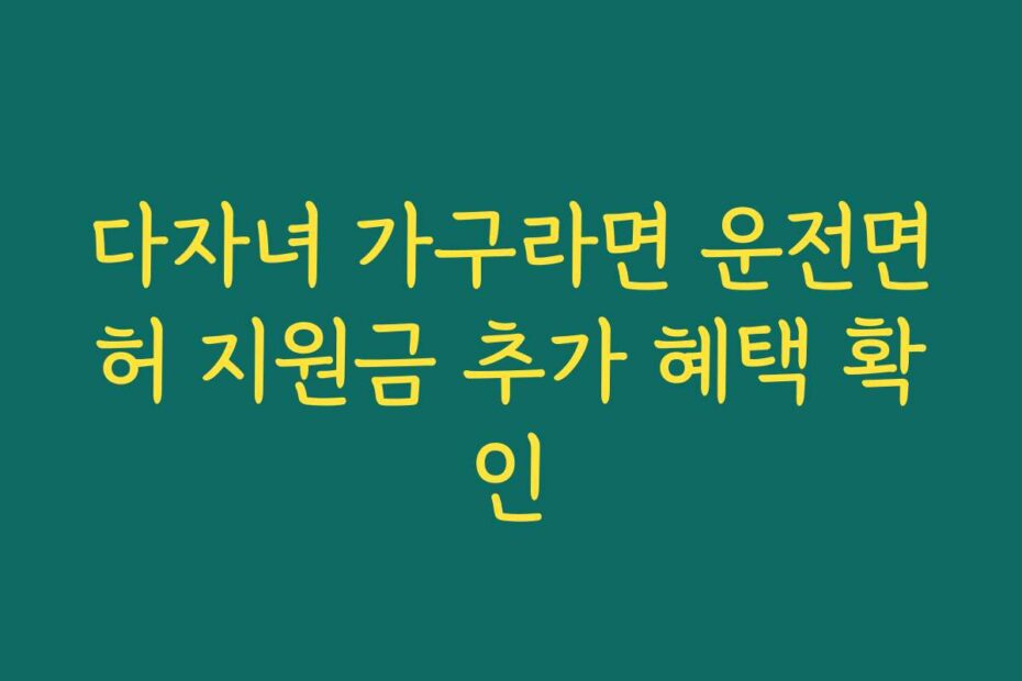 혹시 이런 고민 있으신가요. 다자녀 가구라면 운전면허 지원금 추가 혜택 확인 방법에 대해 알아보세요. 2026년 최신 정보로, 여러분의 궁금증을 해결해 드리겠습니다.