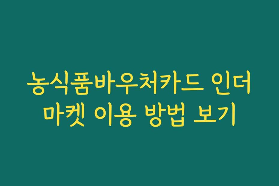 혹시 이런 고민 있으신가요. 2026년 최신 정보로 농식품바우처카드 인더마켓 이용 방법 보기에 대한 모든 내용을 정리했습니다. 이 글을 통해 간단하고 빠르게 필요한 정보를 얻으실 수 있습니다.