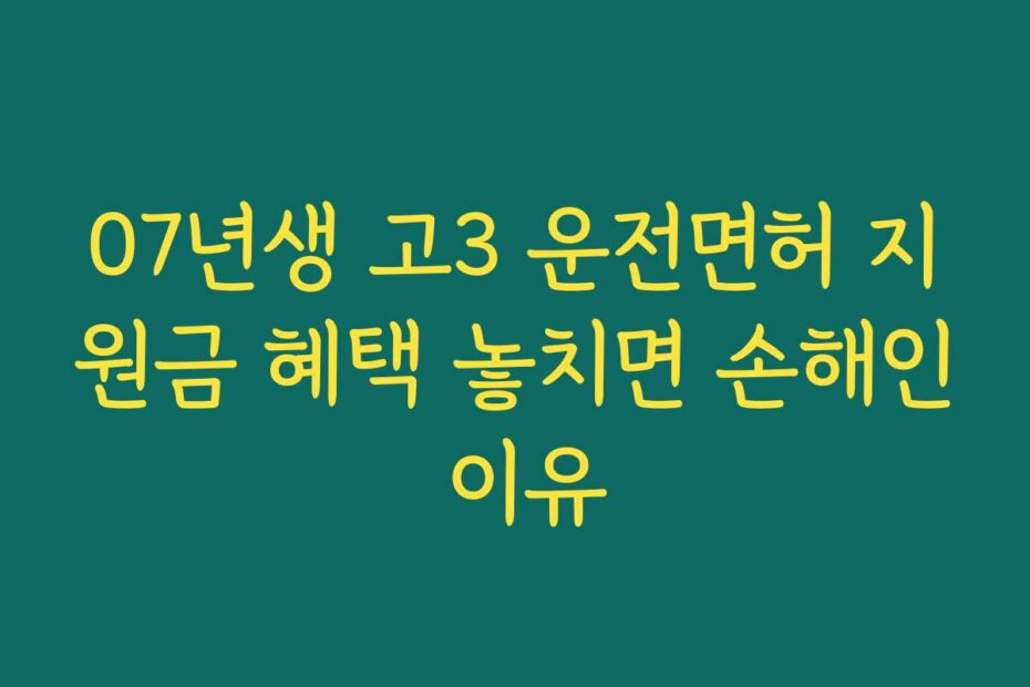 혹시 이런 고민 있으신가요. 2026년 최신 정보에 따르면, 07년생 고3 운전면허 지원금 혜택 놓치면 손해인 이유가 분명합니다. 이 글을 통해 제공되는 정보를 통해 어떤 혜택을 받을 수 있는지 자세히 알아보세요.