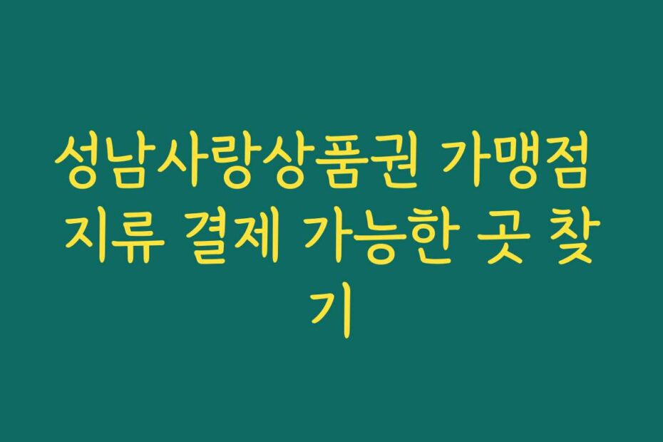 혹시 이런 고민 있으신가요. 2026년 최신 정보로 성남사랑상품권 가맹점 지류 결제 가능한 곳 찾기를 통해 여러분의 소중한 자산을 더욱 유용하게 활용해 보세요. 지금부터 다양한 정보와 팁을 제공하겠습니다.