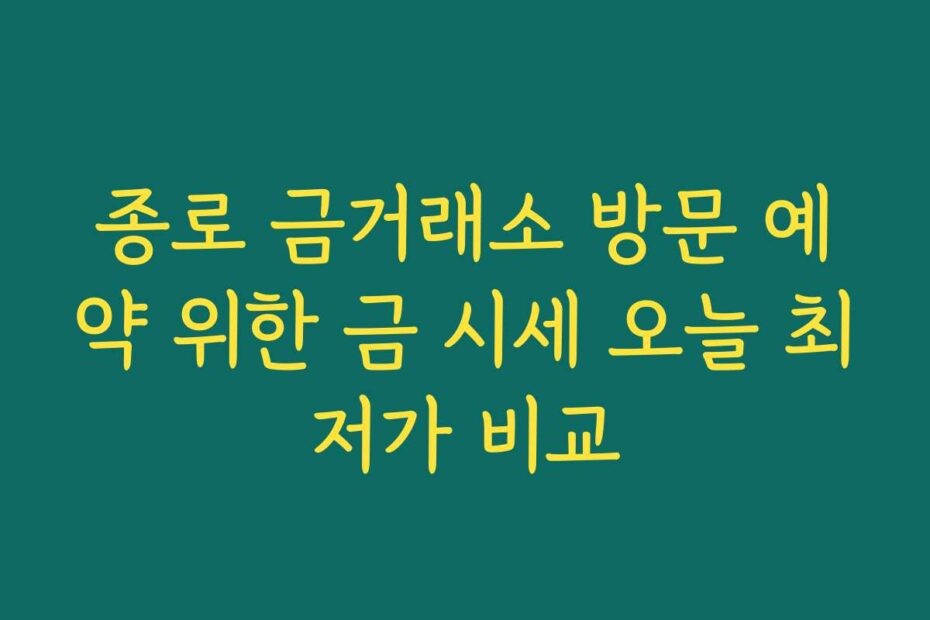 혹시 이런 고민 있으신가요. 금 거래소에 방문하고 싶은데, 금 시세를 어떻게 비교해야 할지 모르겠고, 예약이 복잡하게 느껴지시나요. 종로 금거래소 방문 예약 위한 금 시세 오늘 최저가 비교를 통해 2026년 최신 정보로 간편하게 해결해보세요.