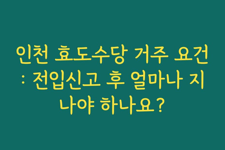혹시 이런 고민 있으신가요. 인천 효도수당 거주 요건: 전입신고 후 얼마나 지나야 하나요. 에 대한 궁금증을 해소해 드립니다. 2026년 최신 정보로 여러분의 고민을 해결해 드리겠습니다.