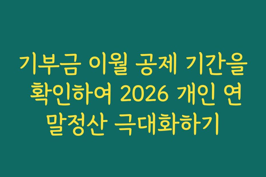 혹시 이런 고민 있으신가요. 기부금 이월 공제 기간을 확인하여 2026 개인 연말정산 극대화하기 위해서는 정확한 정보가 필수입니다. 2026년 최신 정보로 개인 연말정산을 최적화하는 방법을 안내해 드립니다.