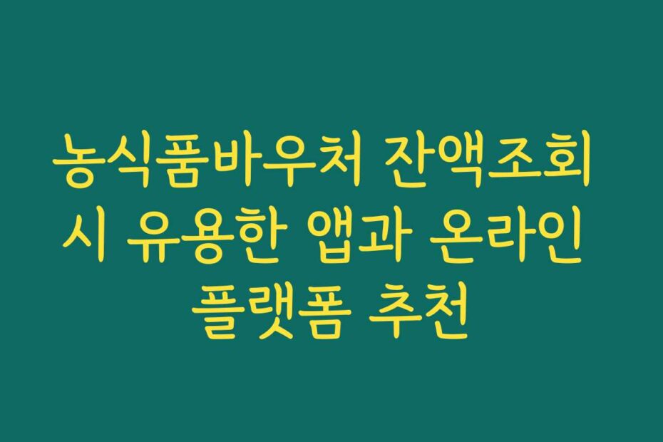 혹시 이런 고민 있으신가요. 농식품바우처 잔액조회 시 유용한 앱과 온라인 플랫폼 추천에 대한 정보가 필요하다면, 2026년 최신 정보를 확인해보세요. 다양한 채널과 방법을 통해 쉽게 잔액을 조회할 수 있습니다.