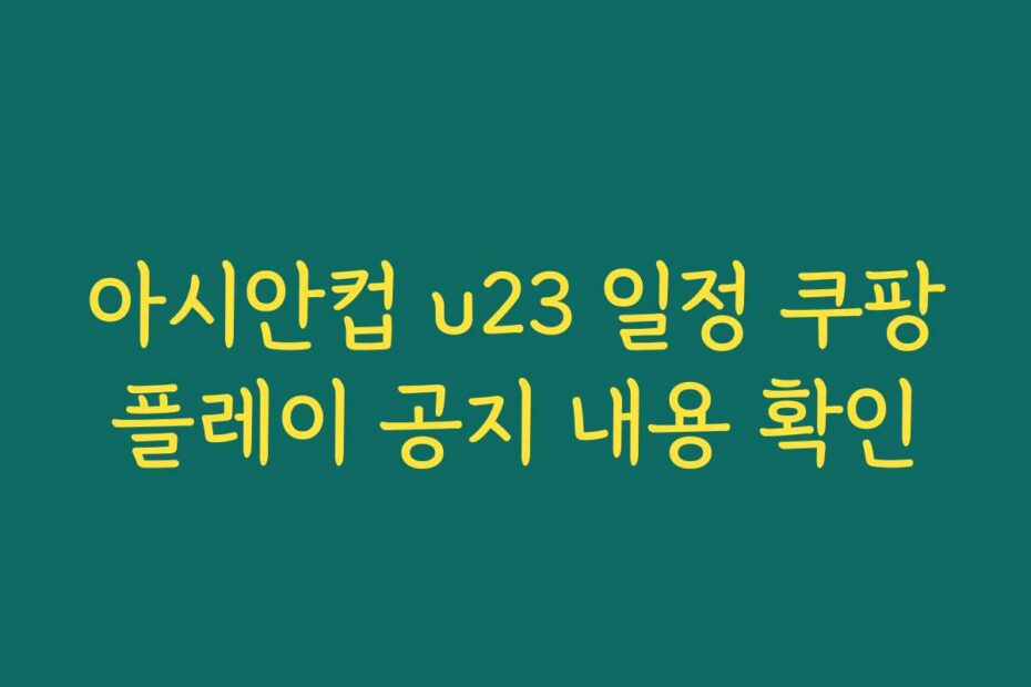 혹시 이런 고민 있으신가요. 2026년 최신 정보로 아시안컵 u23 일정 쿠팡플레이 공지 내용 확인이 필요하신가요. 본 글에서는 모든 정보를 쉽게 정리해 드립니다.