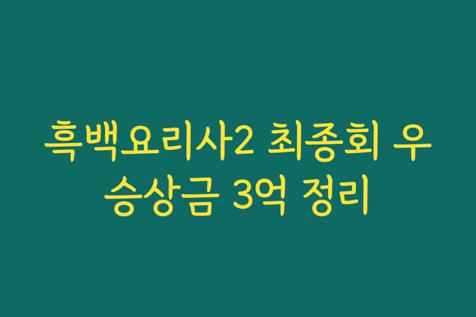 😰 흑백요리사2 최종회 우승상금 3억 정리 때문에 정말 힘드시죠. 혹시 이런 고민 있으신가요. 흑백요리사2 최종회 우승상금 3억 정리와 관련된 정보가 부족해 답답하신 분들을 위해 2026년 최신 정보를 제공합니다.