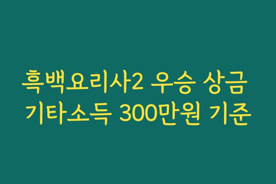 혹시 이런 고민 있으신가요. 흑백요리사2 우승 상금 기타소득 300만원 기준에 대해 궁금하신 분들이 많습니다. 2026년 최신 정보로, 정확한 기준과 주의사항을 알려드리겠습니다.
