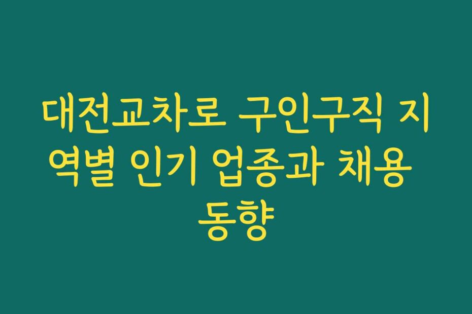 혹시 이런 고민 있으신가요. 대전교차로 구인구직 지역별 인기 업종과 채용 동향에 대한 정보가 필요하신 분들을 위해 2026년 최신 정보를 정리했습니다. 이 글을 통해 당신의 고민을 해결해드리겠습니다.