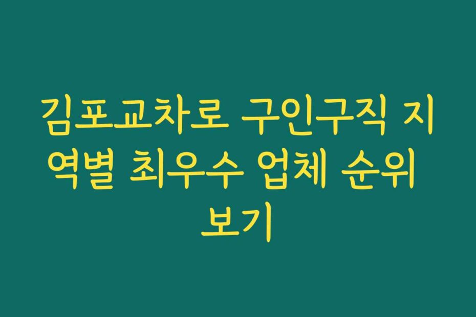 혹시 이런 고민 있으신가요. 2026년 최신 정보로 김포교차로 구인구직 지역별 최우수 업체 순위 보기를 통해 여러분의 구직 활동을 더 효율적으로 만들어 보세요. 이 글에서는 최우수 업체의 정보와 꿀팁을 공유합니다.