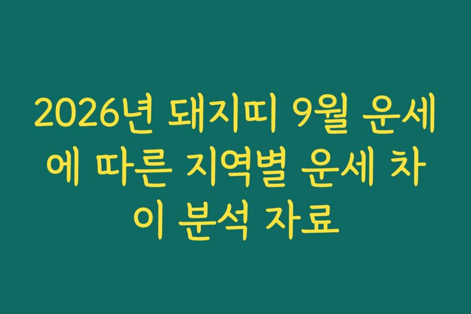 혹시 이런 고민 있으신가요. 2026년 돼지띠 9월 운세에 따른 지역별 운세 차이 분석 자료를 통해 각 지역의 운세를 정확히 이해하고 싶으신가요. 2026년 최신 정보를 바탕으로 지역별 운세의 차이를 심층 분석해 드립니다.