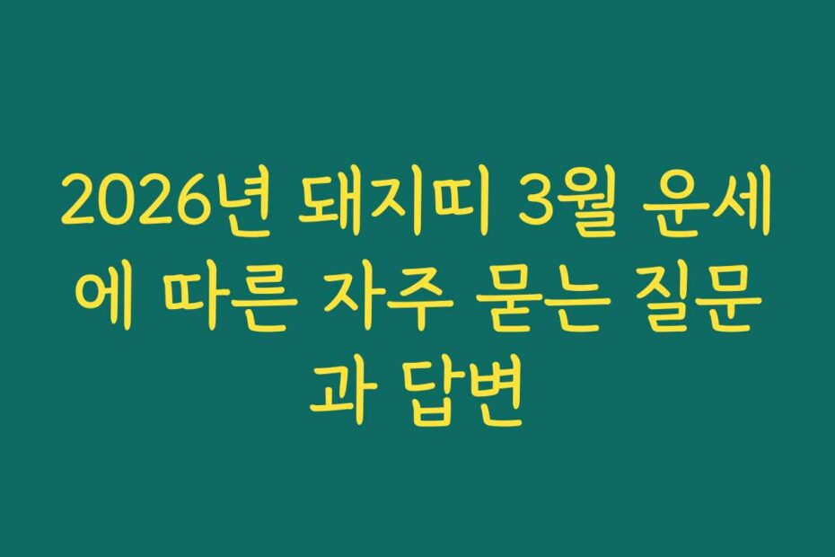 혹시 이런 고민 있으신가요. 2026년 돼지띠 3월 운세에 따른 자주 묻는 질문과 답변을 통해 여러분의 불안을 해소해 드리겠습니다. 2026년 최신 정보와 함께 여러분의 운세에 대한 궁금증을 풀어보세요.