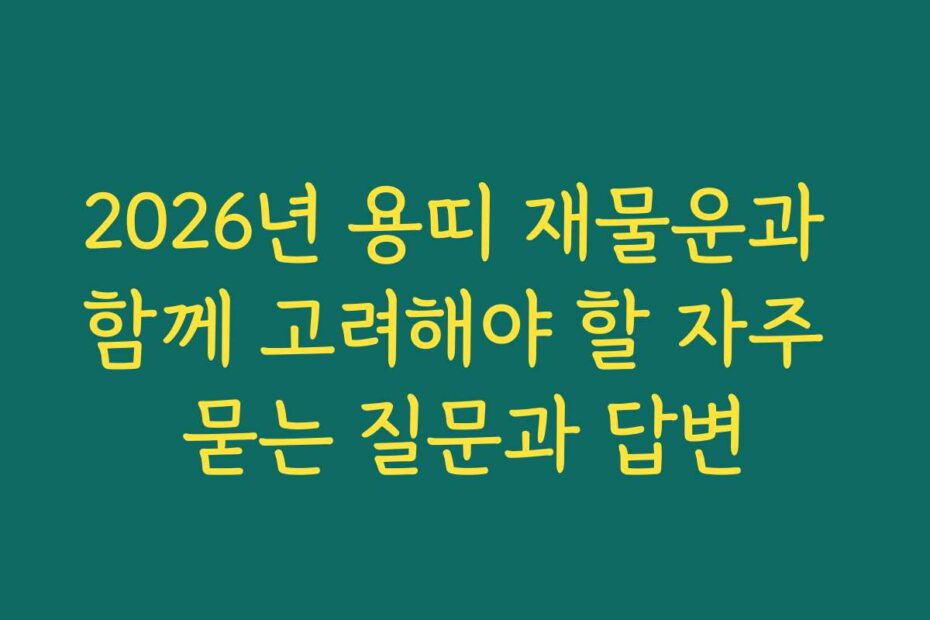 혹시 이런 고민 있으신가요. 2026년 용띠 재물운과 함께 고려해야 할 자주 묻는 질문과 답변을 통해 당신의 궁금증을 해결해 드리겠습니다. 2026년 최신 정보와 함께 올바른 재물운을 찾는 방법을 알아보세요.