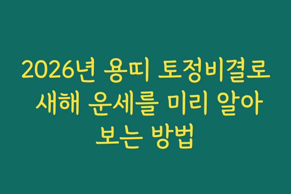 혹시 이런 고민 있으신가요. 2026년 용띠 토정비결로 새해 운세를 미리 알아보는 방법을 알고 싶으신가요. 2026년 최신 정보를 바탕으로 운세를 준비하는 방법을 안내해 드립니다.