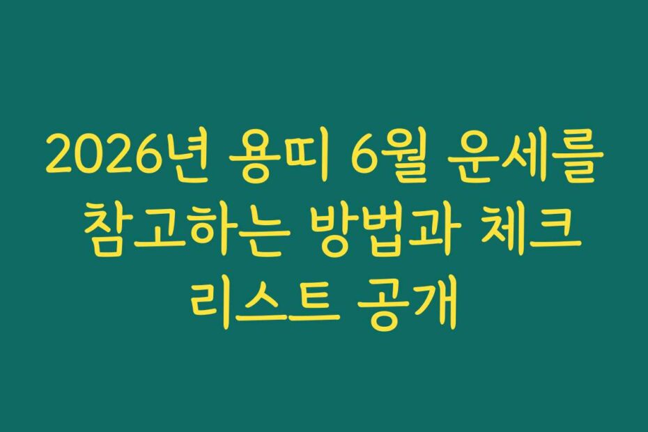 혹시 이런 고민 있으신가요. 2026년 용띠 6월 운세를 참고하는 방법과 체크리스트 공개를 통해 여러분의 운세를 제대로 분석하고 활용하고 싶으신가요. 2026년 최신 정보와 함께 이 글을 통해 여러분의 궁금증을 해결해드리겠습니다.