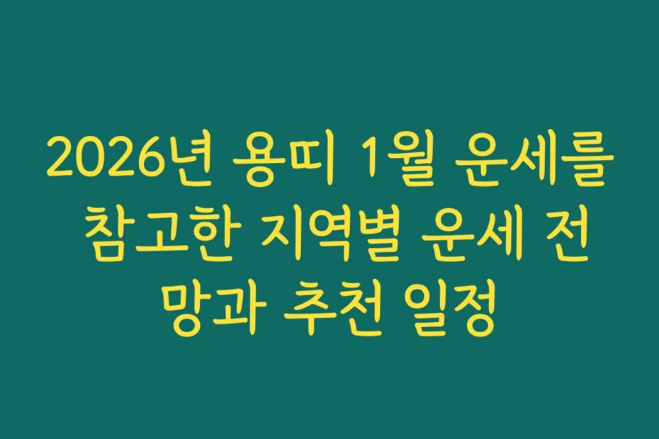 혹시 이런 고민 있으신가요. 2026년 용띠 1월 운세를 참고한 지역별 운세 전망과 추천 일정이 궁금하다면, 본 글에서 2026년 최신 정보를 통해 궁금증을 해소해 드리겠습니다.