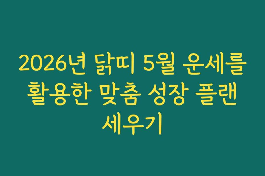 혹시 이런 고민 있으신가요. 2026년 닭띠 5월 운세를 활용한 맞춤 성장 플랜 세우기에서 어떻게 시작해야 할지 막막한 분들을 위해 준비했습니다. 2026년 최신 정보를 바탕으로 한 실질적인 가이드를 제공합니다.