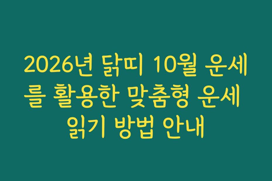 혹시 이런 고민 있으신가요. 2026년 닭띠 10월 운세를 활용한 맞춤형 운세 읽기 방법 안내를 통해 여러분의 궁금증을 해결해 드립니다. 2026년 최신 정보로 여러분의 운세를 적극 활용해 보세요.
