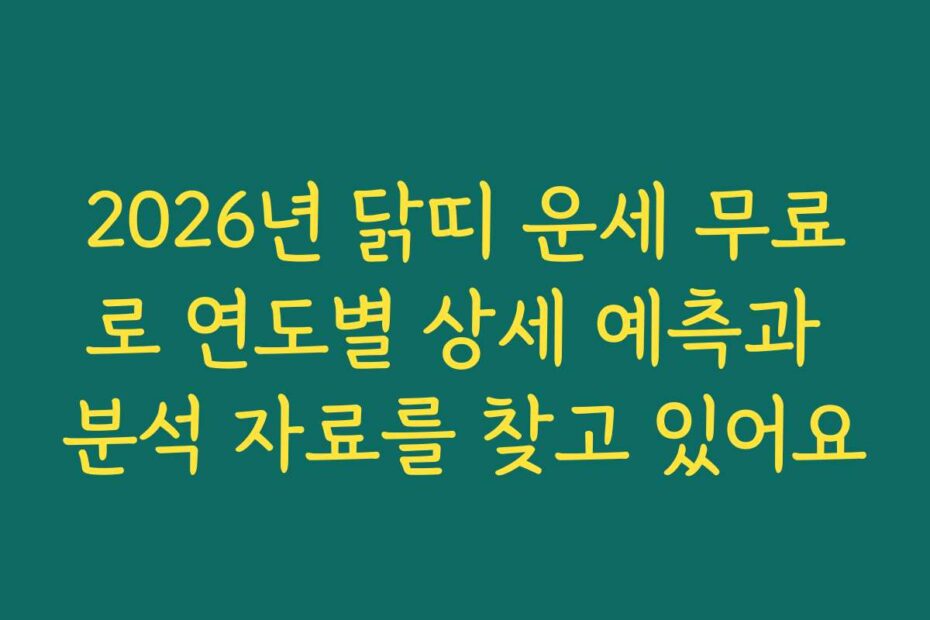 혹시 이런 고민 있으신가요. 2026년 닭띠 운세 무료로 연도별 상세 예측과 분석 자료를 찾고 있어요. 많은 분들이 2026년 최신 정보를 통해 자신의 운세를 미리 알고 싶어 합니다. 이 글에서는 닭띠의 운세를 무료로 자세히 분석해 드리겠습니다.