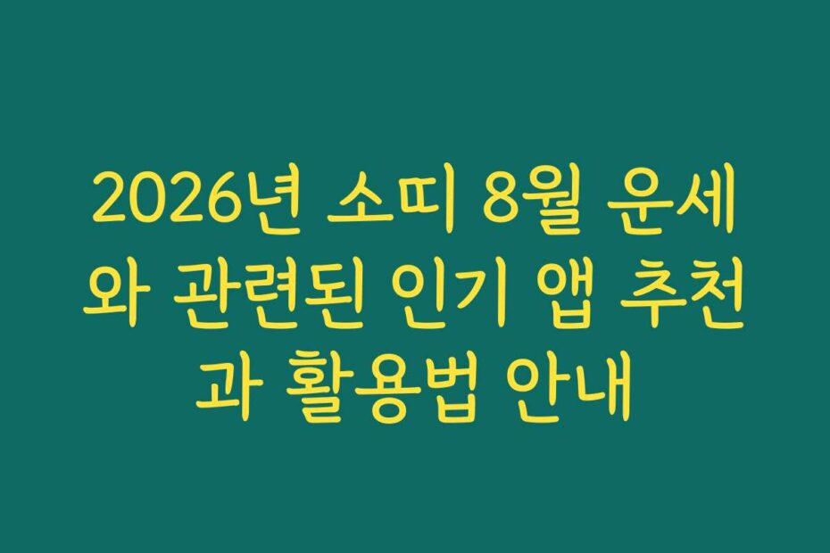 혹시 이런 고민 있으신가요. 2026년 소띠 8월 운세와 관련된 인기 앱 추천과 활용법 안내를 통해 운세를 더 잘 활용하고 싶으신가요. 2026년 최신 정보로 여러분의 운세를 정확하게 파악해보세요.