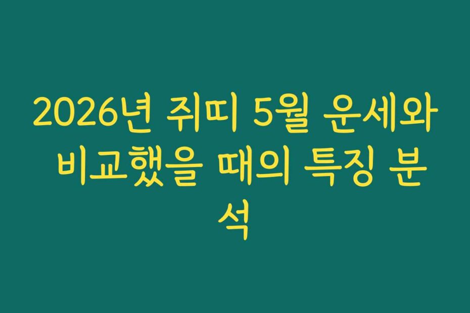 혹시 이런 고민 있으신가요. 2026년 최신 정보인 쥐띠 5월 운세와 비교했을 때의 특징 분석을 통해 여러분의 운세를 이해하고, 더 나은 결정을 내릴 수 있는 방법을 알려드리겠습니다. 이 글 하나로 모든 궁금증을 해결해 드릴게요.