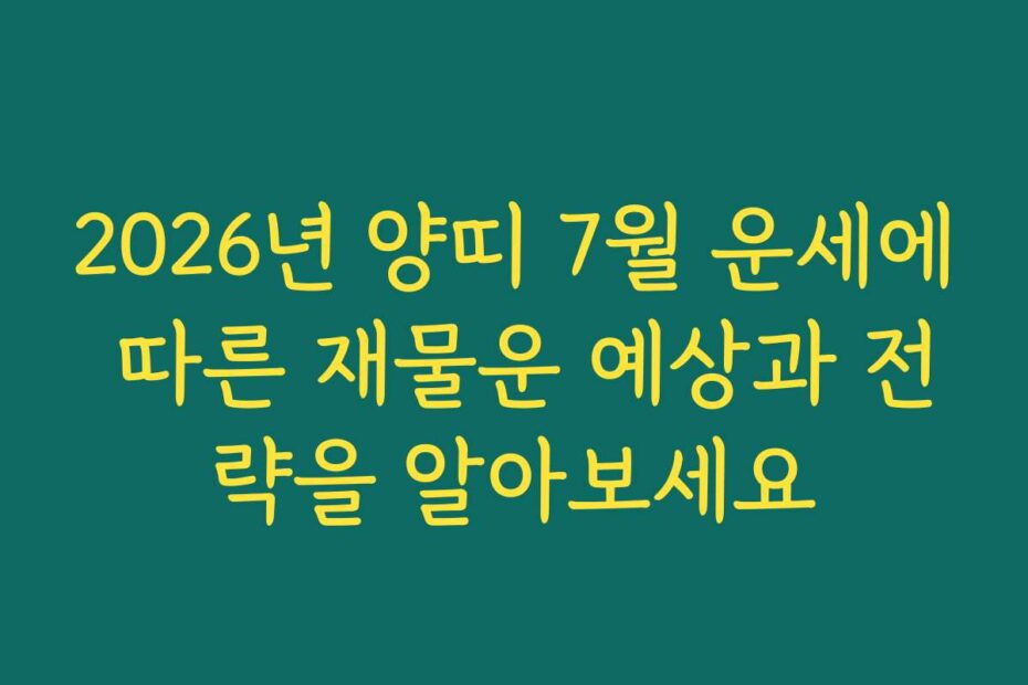 혹시 이런 고민 있으신가요. 2026년 양띠의 7월 운세에 따른 재물운 예상과 전략을 알아보세요. 2026년 최신 정보에 기반하여 여러분의 재정적 결정을 돕겠습니다.
