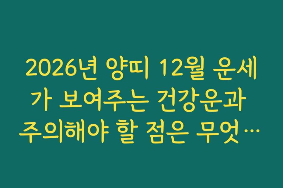 혹시 이런 고민 있으신가요. 2026년 양띠 12월 운세가 보여주는 건강운과 주의해야 할 점은 무엇일까에 대한 정보가 필요하신가요. 본문을 통해 2026년 최신 정보를 만나보세요.
