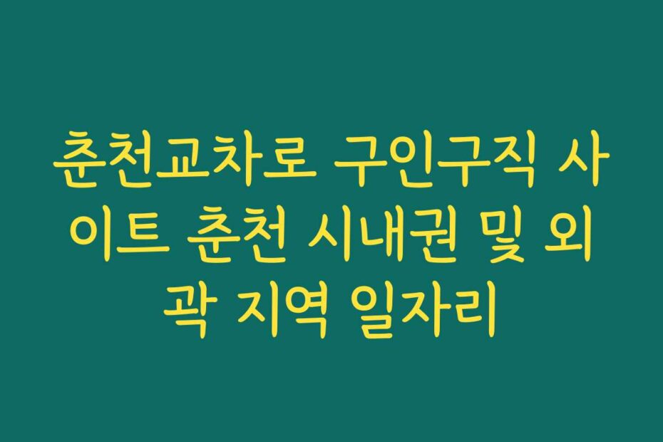 혹시 이런 고민 있으신가요. 2026년 최신 정보로 춘천교차로 구인구직 사이트 춘천 시내권 및 외곽 지역 일자리에 대한 모든 궁금증을 해결해 드립니다. 이 글을 통해 알찬 정보와 실질적인 도움을 드리겠습니다.