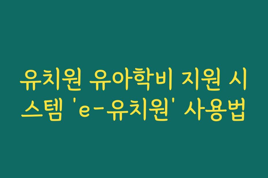 혹시 이런 고민 있으신가요. 유치원 유아학비 지원 시스템 ‘e-유치원’ 사용법을 알아보신다면, 2026년 최신 정보와 함께 쉽게 이해할 수 있도록 설명해 드리겠습니다. 이 글을 통해 모든 궁금증이 해결되기를 바랍니다.