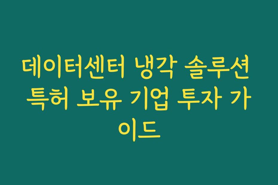 혹시 이런 고민 있으신가요. 데이터센터 냉각 솔루션 특허 보유 기업 투자 가이드에 대한 정보가 부족해 고민하는 분들을 위해 2026년 최신 정보를 담았습니다. 이 글을 통해 데이터센터 투자에 대한 모든 궁금증을 해결해 드리겠습니다.