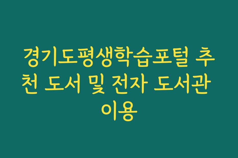 혹시 이런 고민 있으신가요. 경기도평생학습포털 추천 도서 및 전자 도서관 이용에 대한 정보가 부족해 어려움을 겪고 계신가요. 2026년 최신 정보로 이 문제를 해결해 드리겠습니다.
