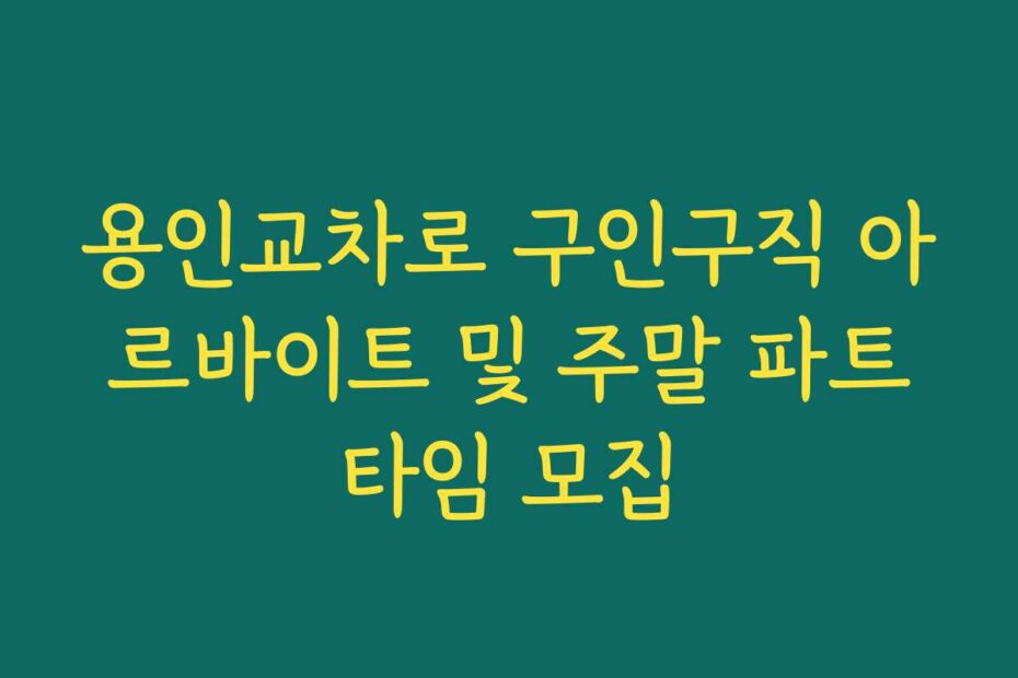혹시 이런 고민 있으신가요. 2026년 최신 정보로 알려드리는 용인교차로 구인구직 아르바이트 및 주말 파트타임 모집에 대한 모든 사항을 정리했습니다. 이 글을 통해 필요한 정보를 빠짐없이 알아보세요.