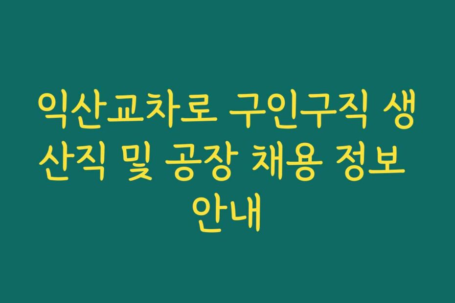혹시 이런 고민 있으신가요. 2026년 최신 정보로 익산교차로 구인구직 생산직 및 공장 채용 정보 안내를 통해 안정적인 일자리를 찾는 방법을 알아보세요. 이 글에서 필요한 모든 정보를 제공해 드리겠습니다.
