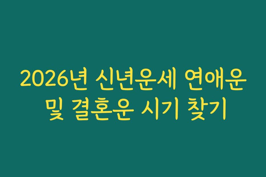 혹시 이런 고민 있으신가요. 2026년 신년운세 연애운 및 결혼운 시기 찾기에서 혼란스러우신 분들께, 2026년 최신 정보로 도움이 될 만한 내용을 준비했습니다. 이 글을 통해 연애와 결혼에 대한 명확한 방향을 제시받아 보세요.