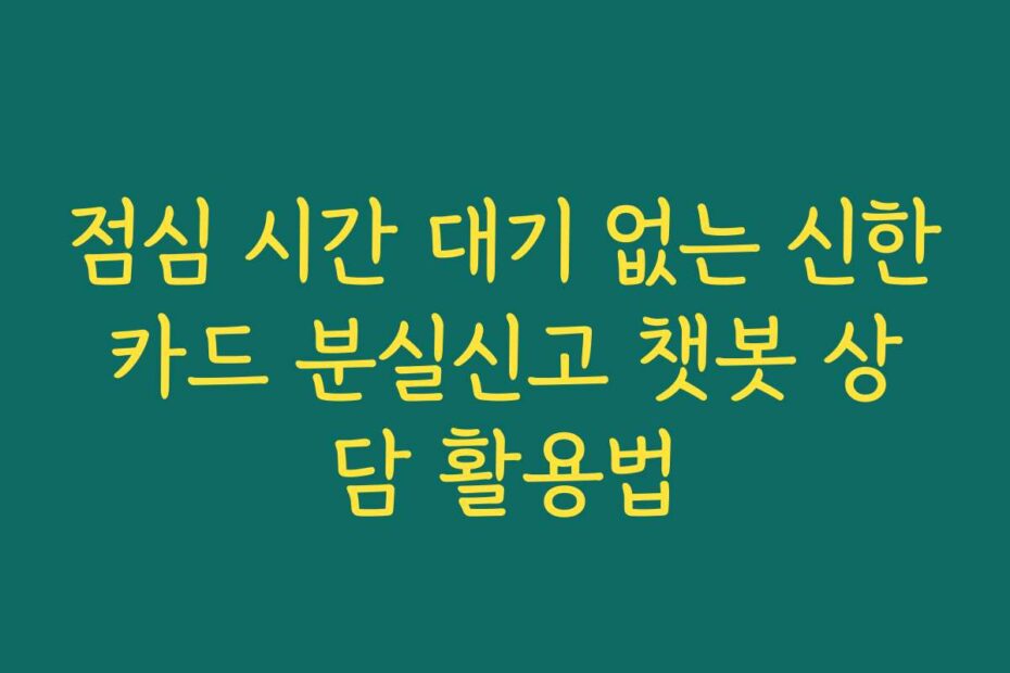 혹시 이런 고민 있으신가요. 점심 시간 대기 없는 신한카드 분실신고 챗봇 상담 활용법을 통해 신속하고 간편하게 분실신고를 진행할 수 있습니다. 2026년 최신 정보로, 대기 시간을 줄이고 효율적인 상담을 원하신다면 이 글을 꼭 읽어보세요.