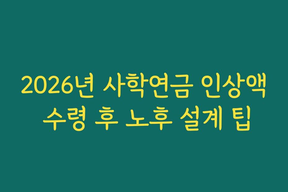 혹시 이런 고민 있으신가요. 2026년 사학연금 인상액 수령 후 노후 설계 팁에 대해 고민하고 계신다면, 이 글이 도움이 될 것입니다. 2026년 최신 정보와 함께 노후 설계를 위한 유용한 팁을 제공해 드립니다.