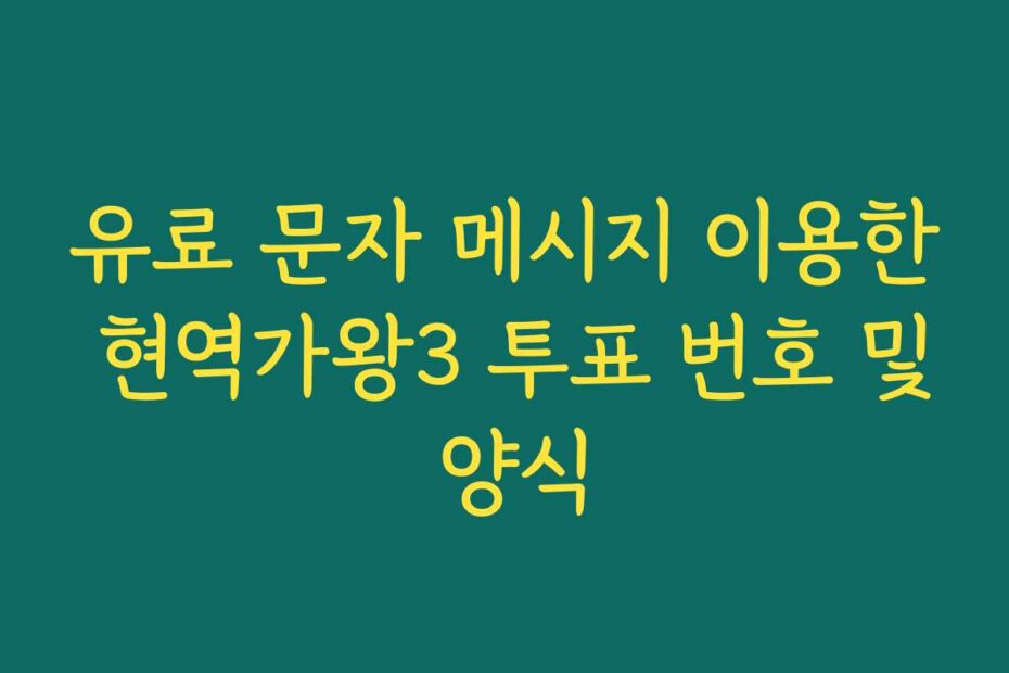 혹시 이런 고민 있으신가요. 2026년 최신 정보로 유료 문자 메시지 이용한 현역가왕3 투표 번호 및 양식을 안내합니다. 이 글을 통해 투표에 대한 모든 궁금증을 해결해 보세요.