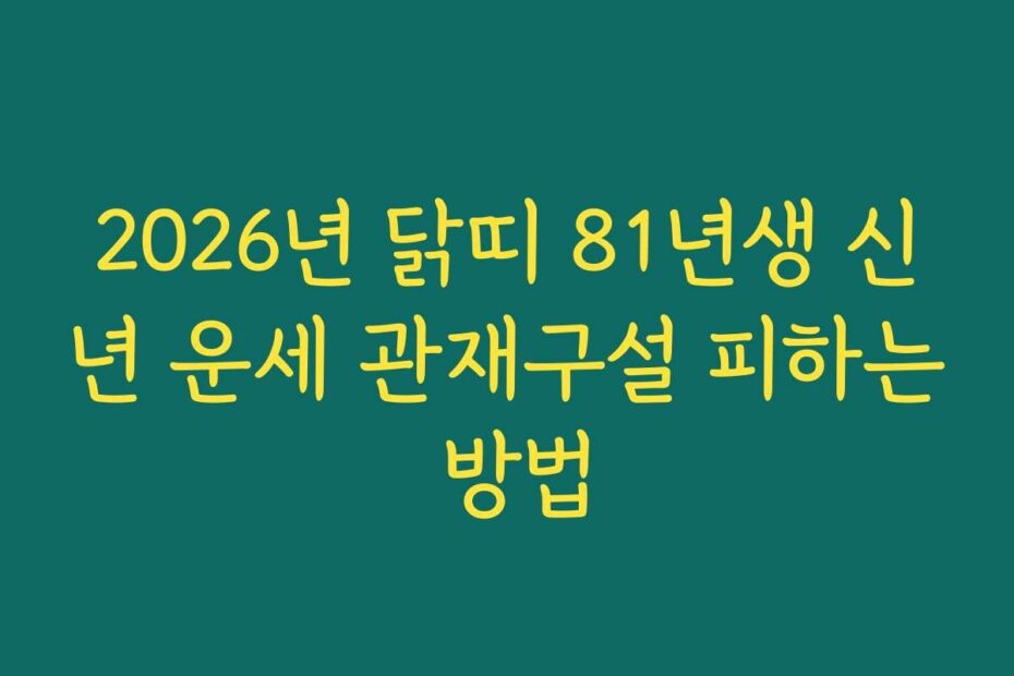 혹시 이런 고민 있으신가요. 2026년 닭띠 81년생 신년 운세 관재구설 피하는 방법에 대해 알아보고 싶으신 분들을 위해, 2026년 최신 정보와 함께 유용한 팁을 제공합니다. 여러분의 소중한 한 해를 위해 필요한 정보를 놓치지 마세요.