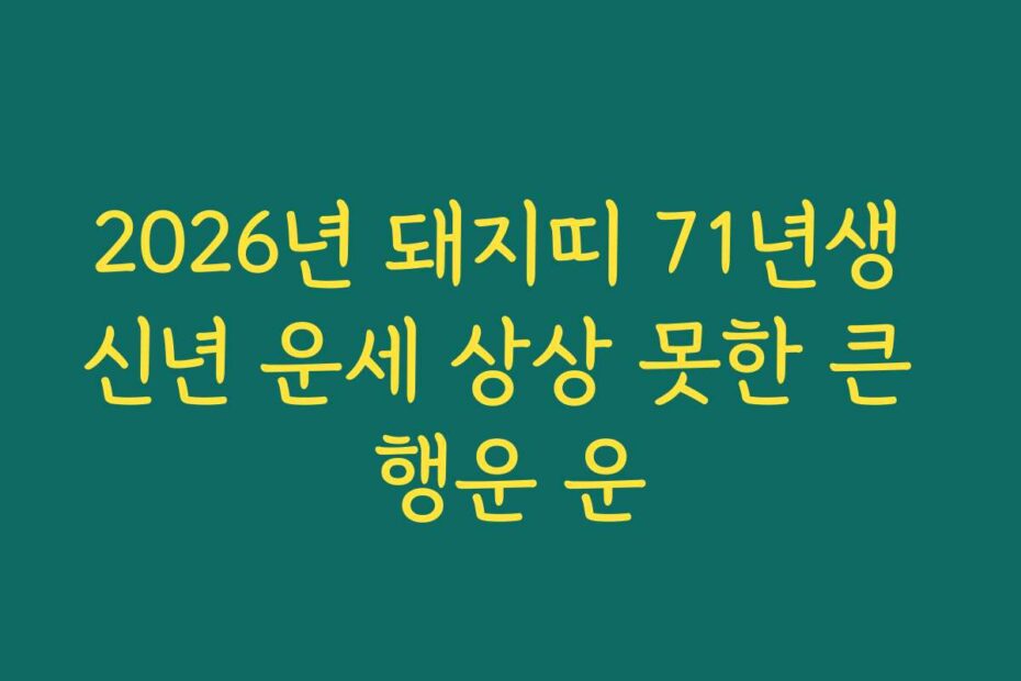 혹시 이런 고민 있으신가요. 2026년 돼지띠 71년생 신년 운세 상상 못한 큰 행운 운으로 새로운 시작을 준비하는 게 막막하게 느껴지시나요. 2026년 최신 정보로 여러분의 운세를 정확하게 파악해보세요.