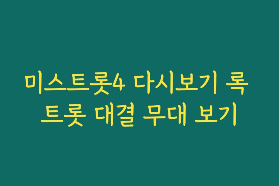 혹시 이런 고민 있으신가요. 2026년 최신 정보로, 미스트롯4 다시보기 록 트롯 대결 무대 보기를 통해 원하는 모든 정보를 쉽게 얻을 수 있습니다. 많은 분들이 찾는 이 주제를 통해 고민을 해결해 보세요.