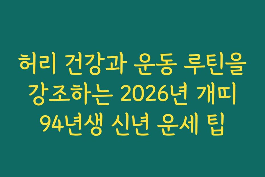 혹시 이런 고민 있으신가요. 허리 통증과 운동 부족으로 힘든 2026년 개띠 94년생에게 꼭 필요한 허리 건강과 운동 루틴을 강조하는 2026년 개띠 94년생 신년 운세 팁을 소개합니다. 2026년 최신 정보로 여러분의 건강과 행복을 지키세요.