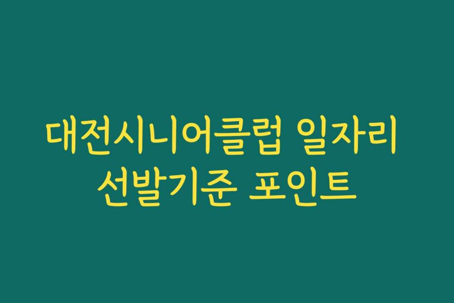 혹시 이런 고민 있으신가요. 대전시니어클럽 일자리 선발기준 포인트에 대한 정보가 부족해 혼란스러우신가요. 2026년 최신 정보로 대전시니어클럽의 일자리 선발기준을 명확히 안내해 드리겠습니다.