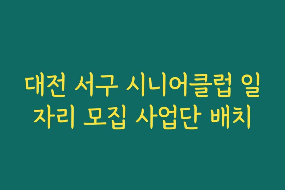 혹시 이런 고민 있으신가요. 대전 서구 시니어클럽 일자리 모집 사업단 배치에 대한 정보가 부족해 고민하고 계신가요. 2026년 최신 정보를 통해 여러분이 꼭 알아야 할 내용을 정리했습니다.