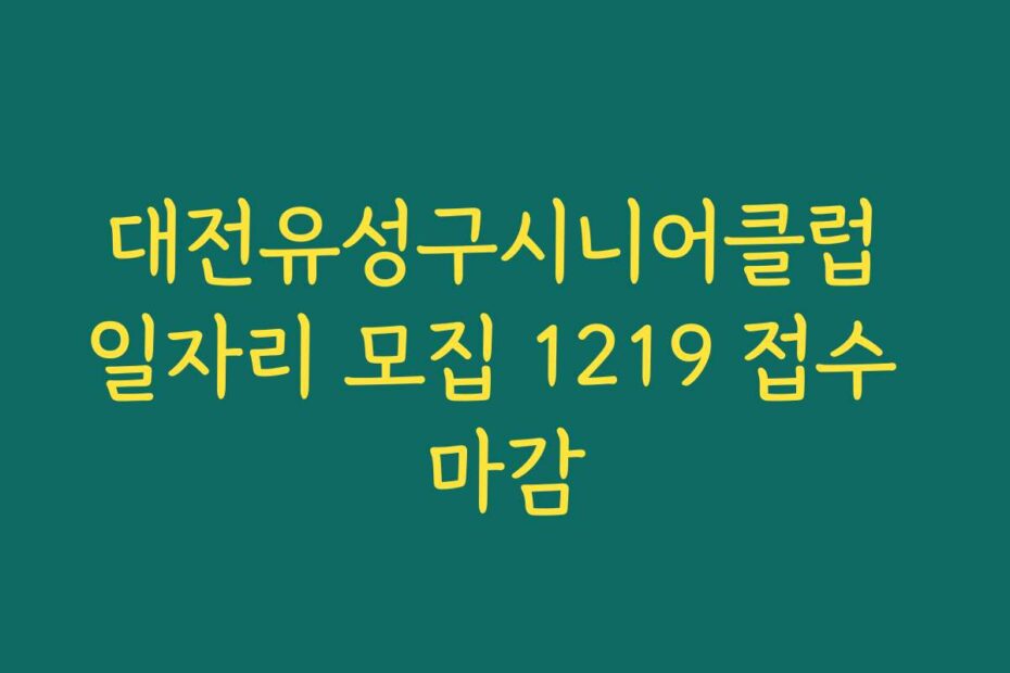 👉✅ 상세 정보 바로 확인 👈 혹시 이런 고민 있으신가요. 대전유성구시니어클럽 일자리 모집 1219 접수 마감 관련 정보가 필요하신가요. 2026년 최신 정보로 여러분의 궁금증을 시원하게 해결해 드리겠습니다.
